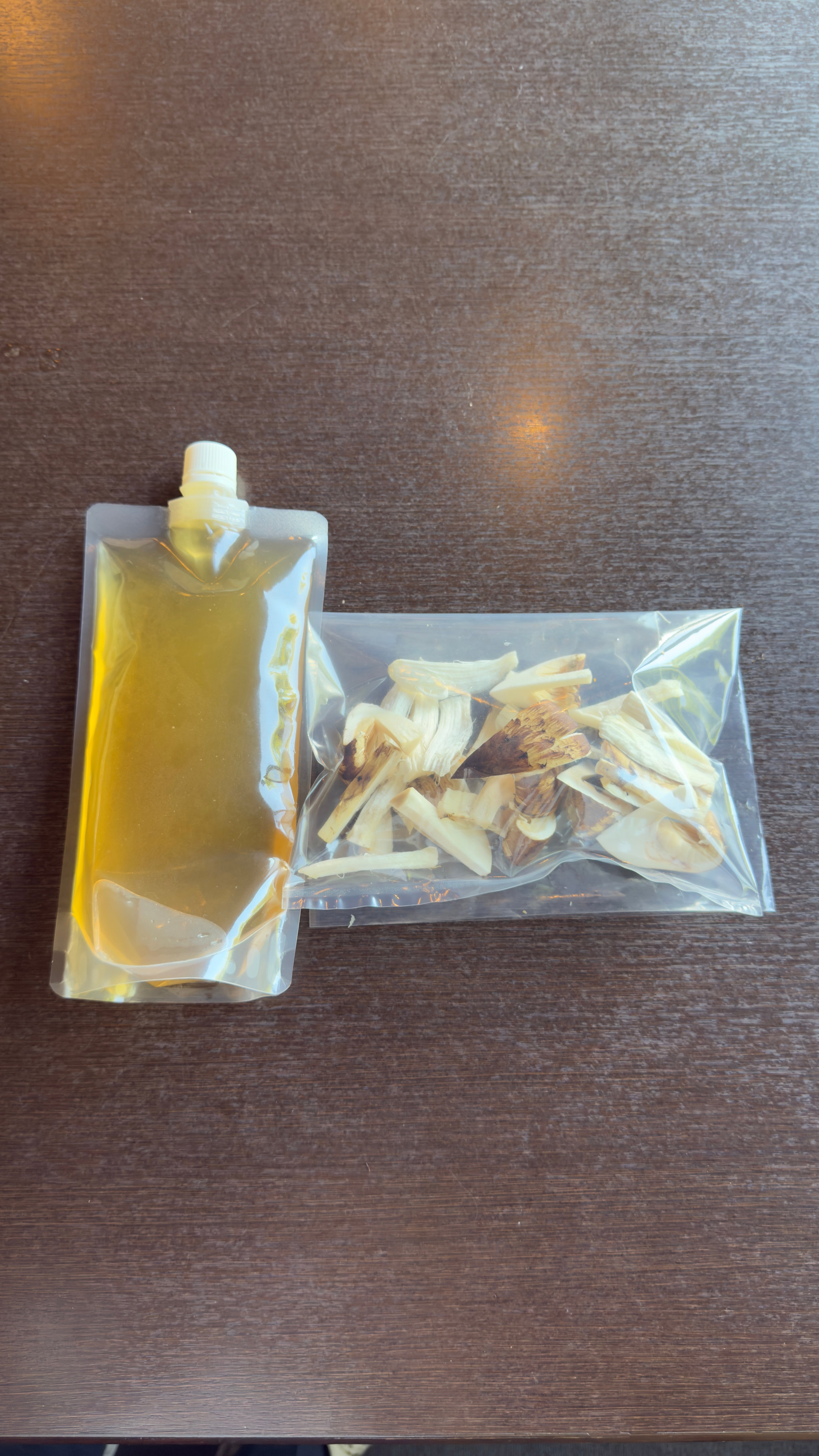 厳選した松茸 約100g(洗ってカット済み、外国産も含まれます)を使用し、昆布と鰹の旨味を引き出した特製出汁 500ccを別容器にてご用意しました。